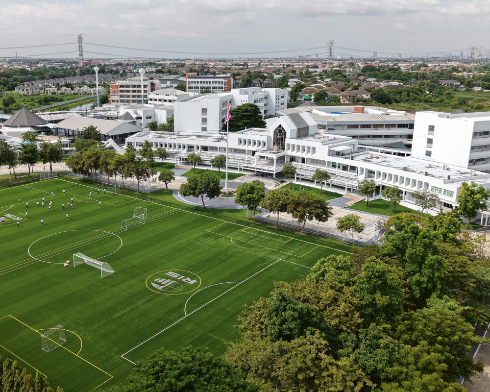 The 29-acre Minburi campus serves over a thousand students and is supported by four affiliate campuses across Bangkok and Phuket. Facilities include performing and visual arts studios, design and robotics labs, a culinary center, and a contemporary boarding residence for students aged 12 to 18.
